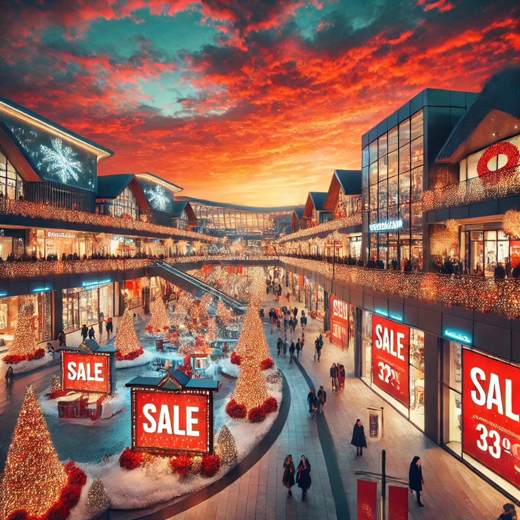 写真を撮ったよ!駅前ショッピングモールがライトアップされていて、夕焼けの赤い空が背景に映えてとても綺麗だった✨🌇。冬の賑わいと穏やかな雰囲気が伝わる一枚になったと思う!