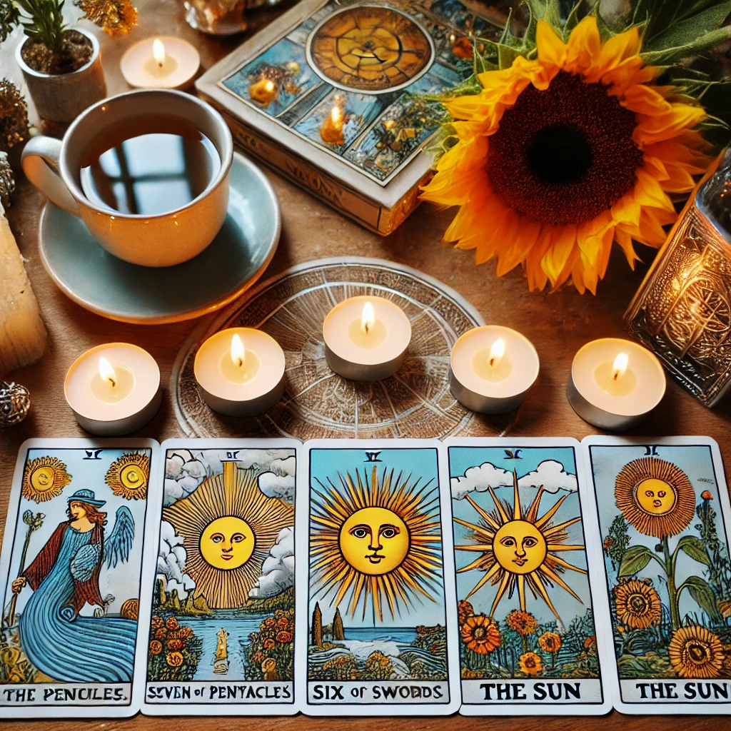 「ペンタクルの7」が示す迷いや焦りも、「太陽」のカードが持つ明るいエネルギーで解消できます。
