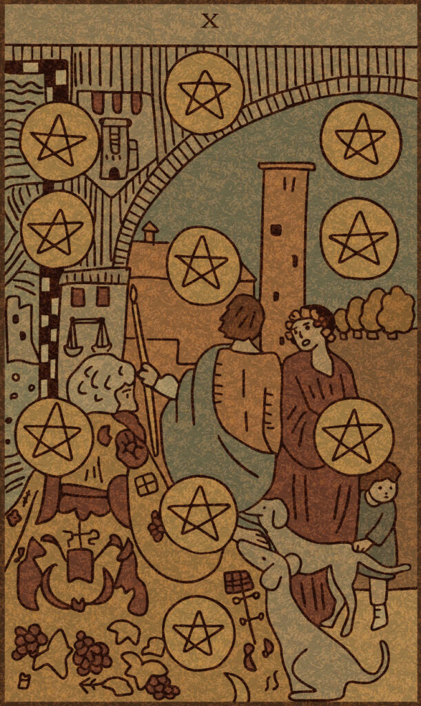 金運: 「ペンタクルの10」が金運の安定を示しています。家族や仲間と共有する楽しさを意識すると吉。