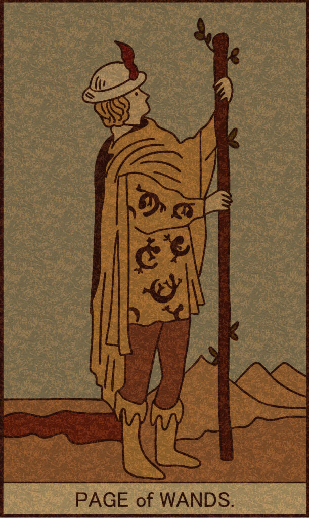 タロットカード: 「塔」「ソードの6」「ワンドのペイジ」