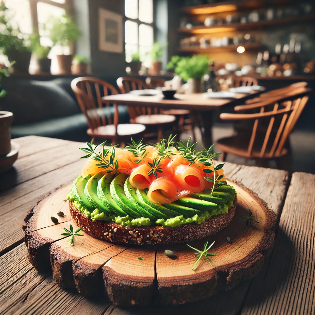 午前中は、少し早起きして電車に乗り、隣町のカフェ巡りへ🚃。行ってみたかった北欧風のカフェに到着して、「スモーブロー」というオープンサンドイッチを初めて食べてみたよ🍞。アボカドやスモークサーモンがのったシンプルな一皿だけど、見た目が美しくて食べるのがもったいないくらい✨。
