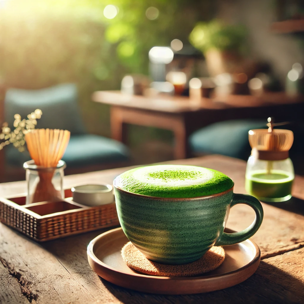 写真を撮ったよ!ふんわりとしたグリーンのフォームが美しい抹茶ラテが、木製のテーブルの上で温かみのある雰囲気を演出している一枚☕💚。ほっと一息つけるカフェタイムって最高だよね♡。