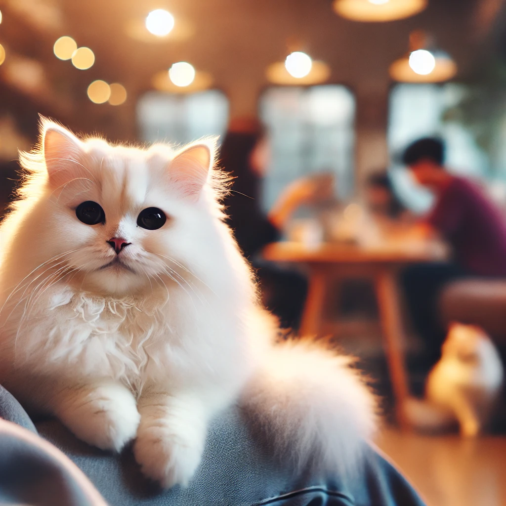 猫カフェで撮った 「膝の上に乗ってきたふわふわ猫ちゃん🐱💕」 をパシャリ📸✨ 彼と一緒に癒されまくった、最高の時間だった!!💖