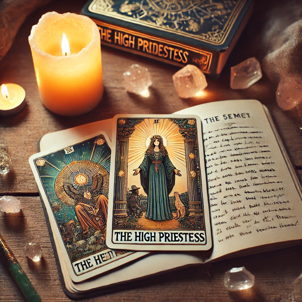 今日の鑑定で出た 「隠者」&「女教皇」 のタロットカードをパシャリ📸✨ 焦らず、自分の心の声を大切にすること💖 それが、未来を切り開く鍵✨
