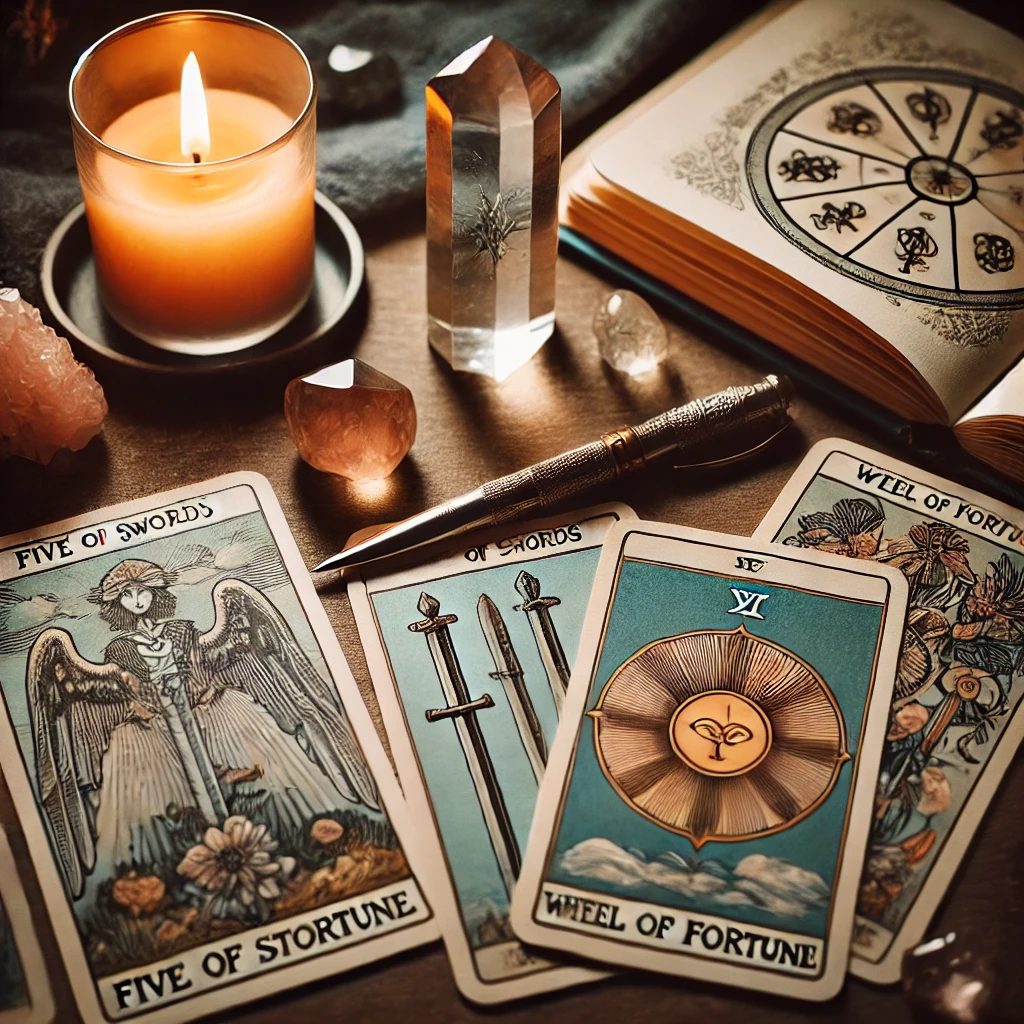 今日の鑑定で出た 「剣の5」&「運命の輪」 のタロットカードをパシャリ📸✨ 人間関係の悩みも、必ず流れが変わる!!! 前向きに、自分らしくいよう💖✨