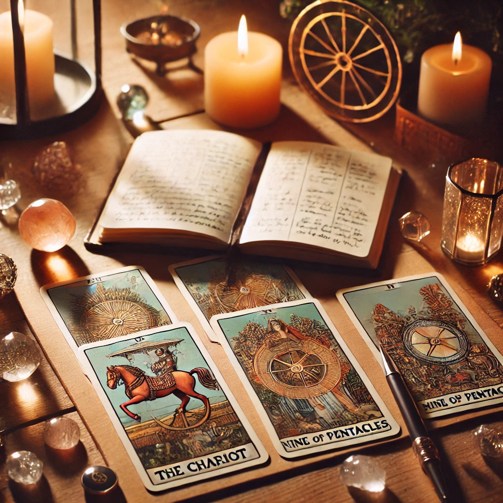 今日の鑑定で出た 「戦車」&「ペンタクルの9」 のタロットカードをパシャリ。夢を追うなら、計画的に進めることが大事。でも、一歩ずつ進めば、必ず形になる。