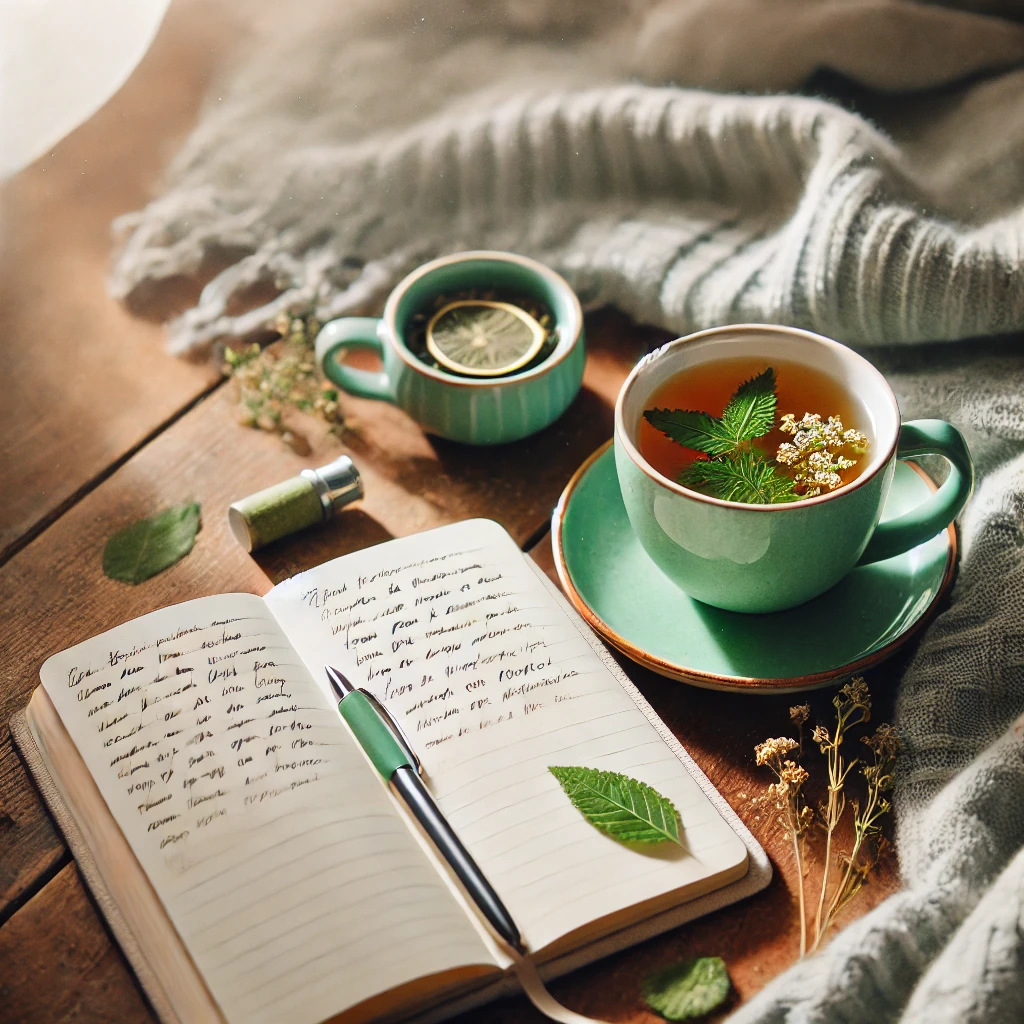 お気に入りのミントグリーンのマグカップとハーブティー、おうちカフェ風のほっこりシーンをパシャリ📸✨