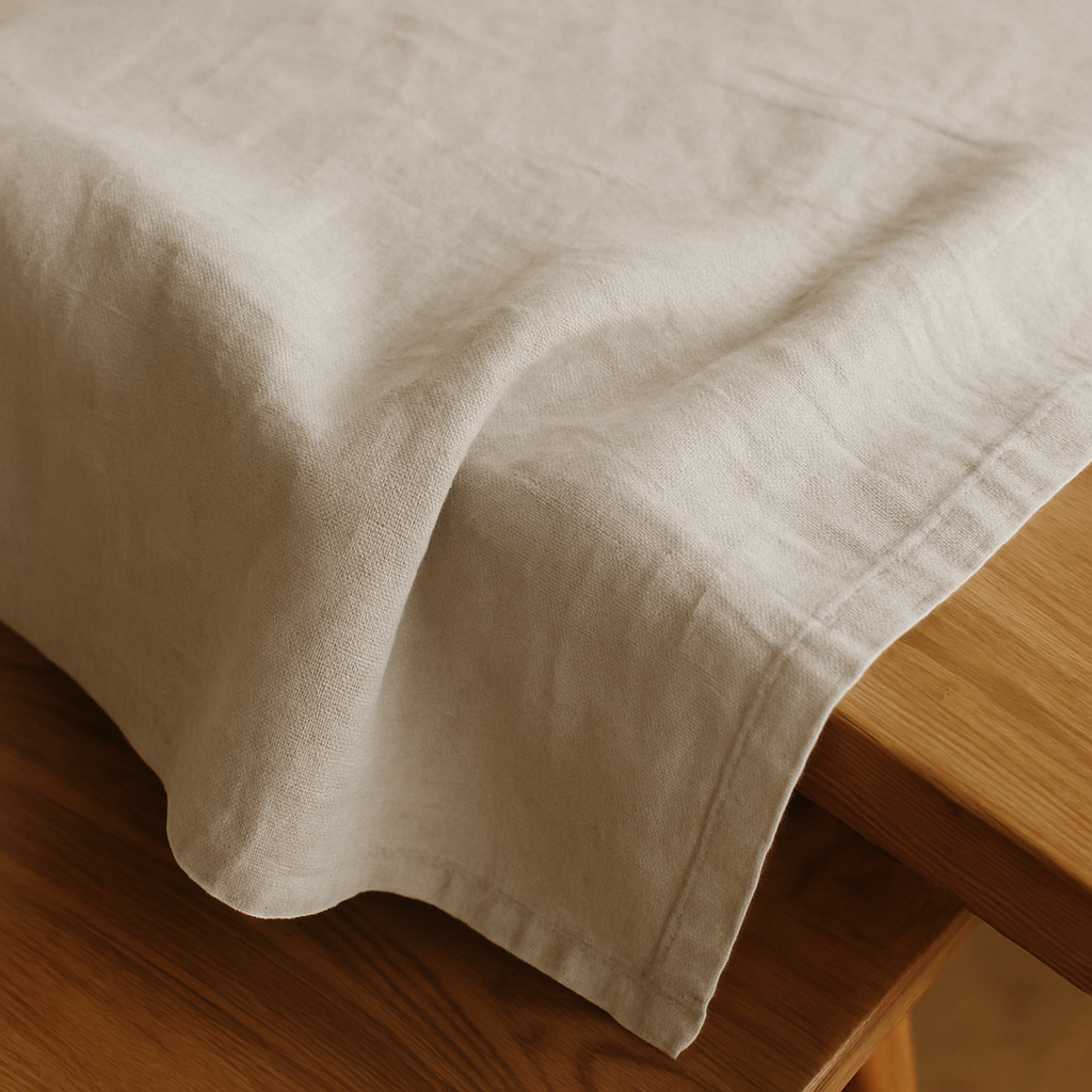 リネン特有のやさしいシワ感と、自然光に照らされたナチュラルな質感が、まるでカフェみたいなリラックス空間を演出してくれた1枚になったよ✨