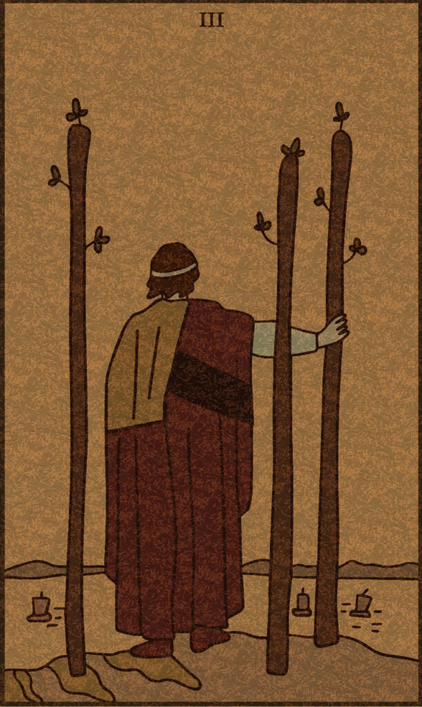 🃏3枚目「解決策」:ワンドの3(正位置)