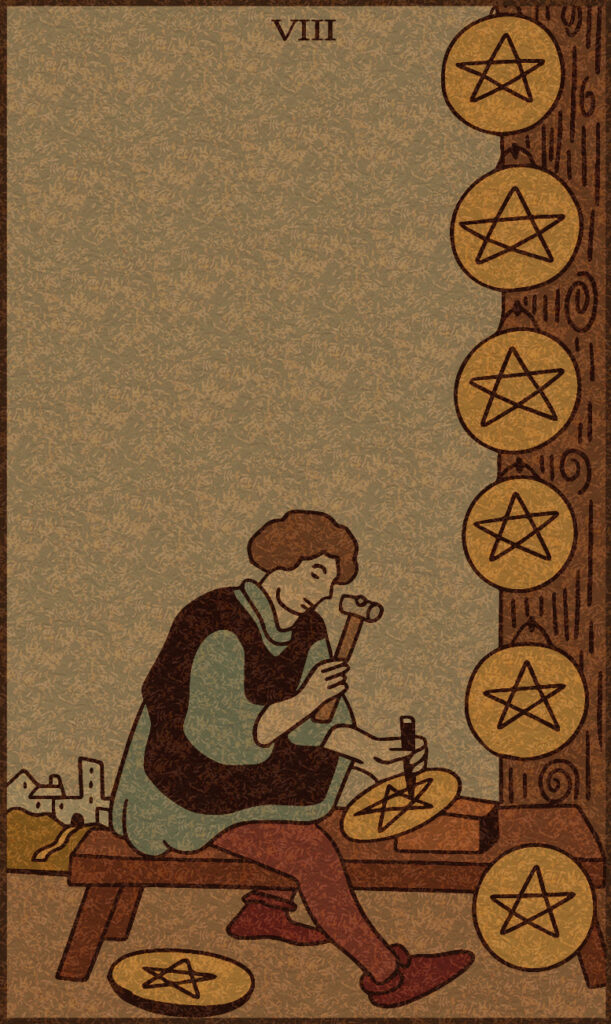 🃏2枚目「原因」:ペンタクルの8(正位置)