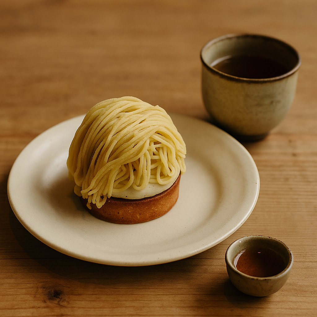 お芋のモンブランと、添えられてたほうじ茶の小さな湯呑み🍠🍵