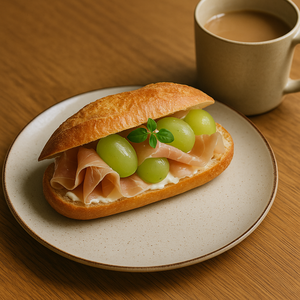 ずっと気になってた**「シャインマスカットと生ハムのサンド」**を頼んでみたら、