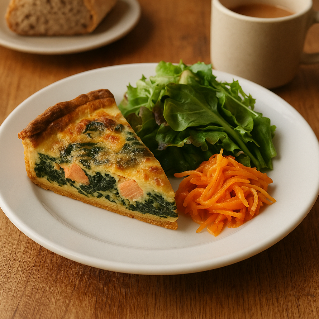 「ほうれん草とサーモンのキッシュプレート」🥧🥗