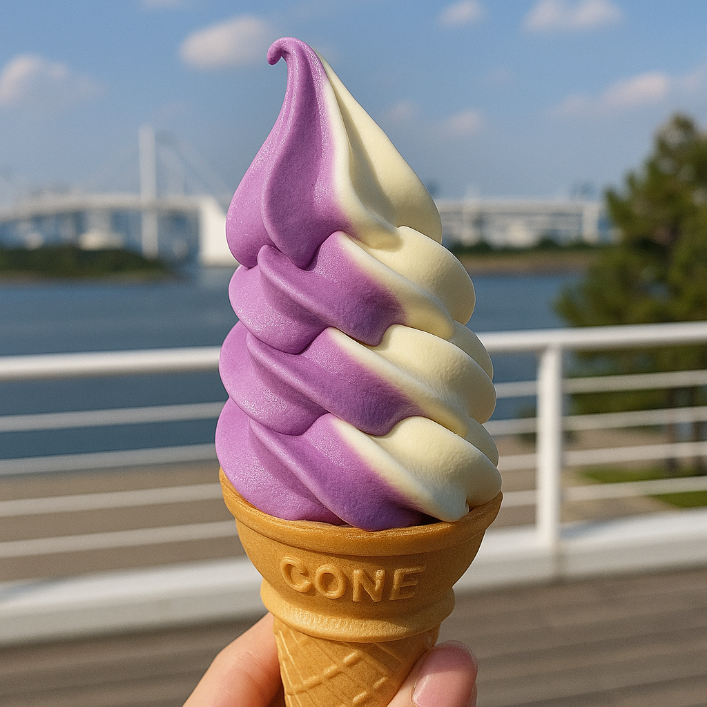 お台場のテラスで食べた「紫いもとバニラのソフトクリーム」🍠🍦