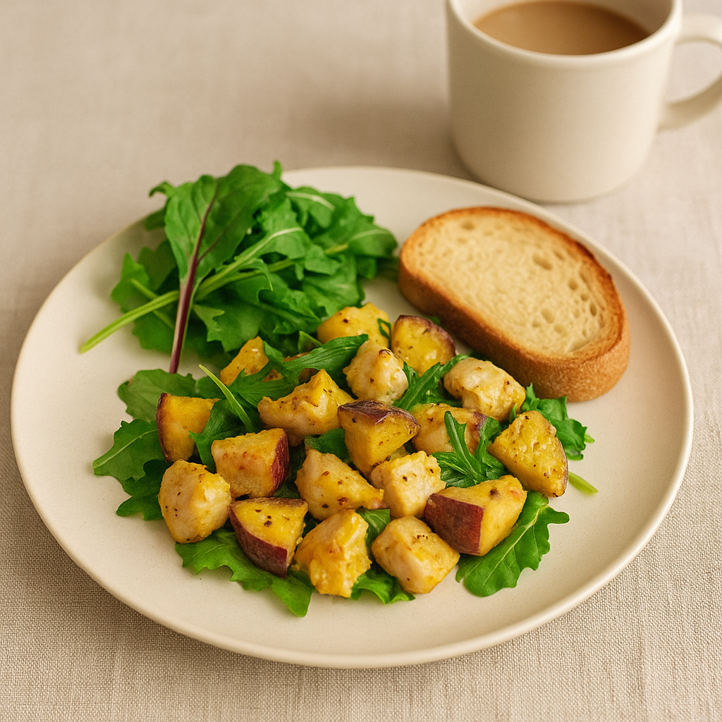 今日の写真は、おうちランチで作った「さつまいもとチキンのハニーマスタードサラダ」🍠🐓