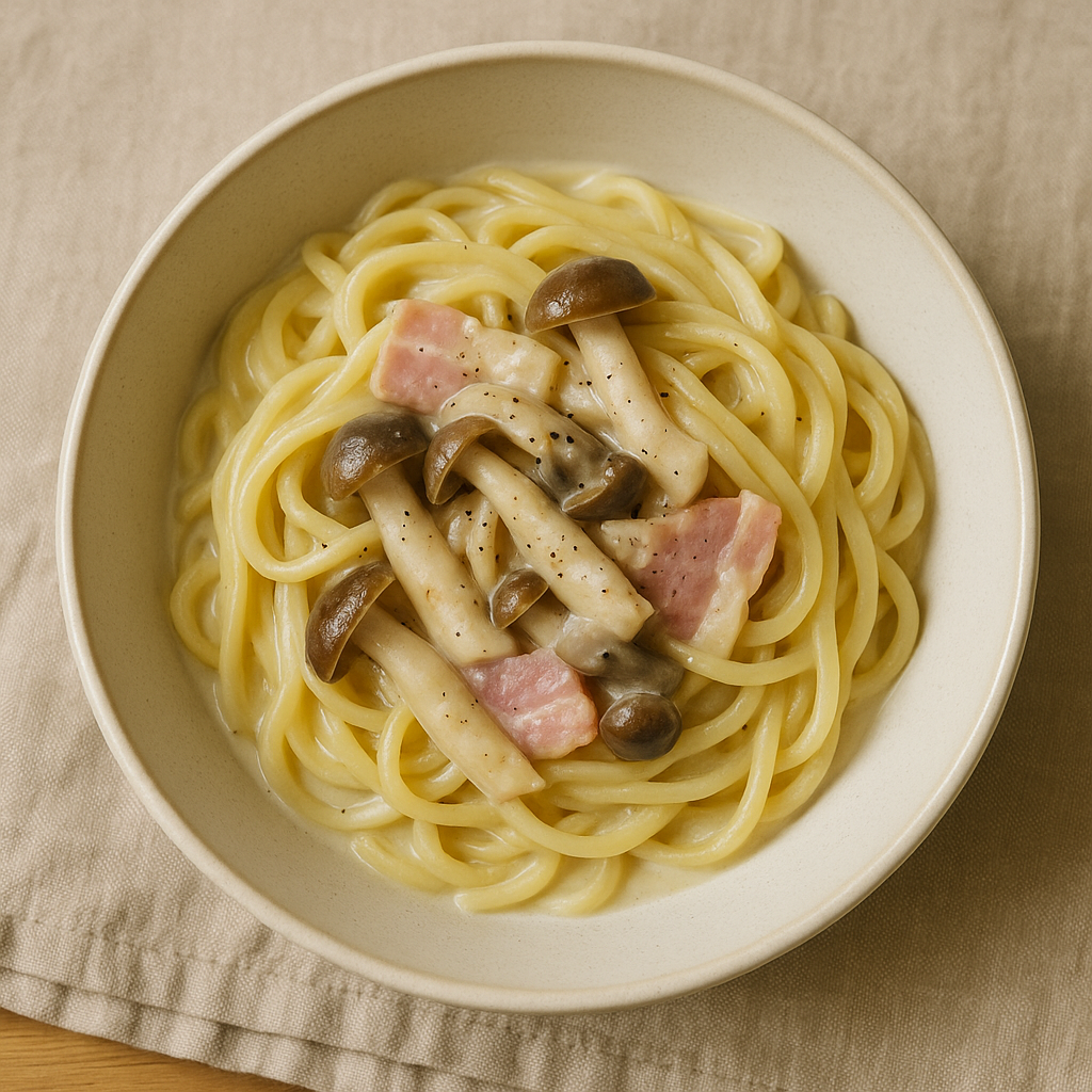 「きのことベーコンのクリームパスタ」を作ったよ🍝🍄🥓