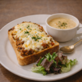 朝食に食べた焼きバナナトーストと、ふわふわのカフェオレのセット☕🍌
