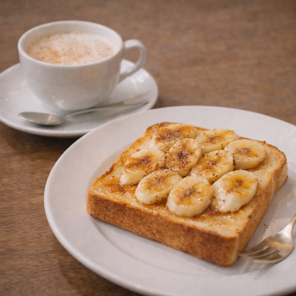 朝ごはんはシンプルに、バナナトーストとカフェオレ☕🍌