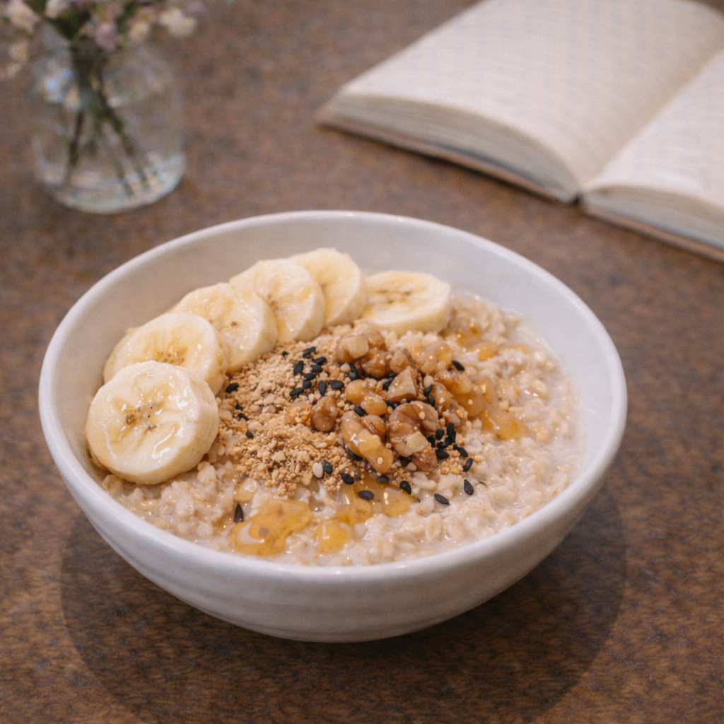 きなことバナナのオートミールボウル。立春の朝にぴったりの整え朝ごはん♡