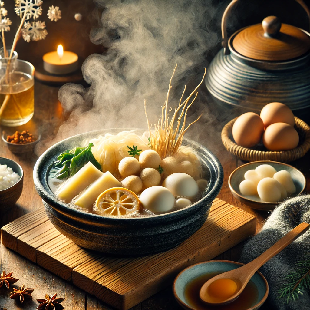 写真を撮ったよ!おでんの湯気がほっこり感を演出して、冬らしい温かい雰囲気が伝わるかな🍢✨。寒い日にこんな食事があると、体も心も癒されるよね!